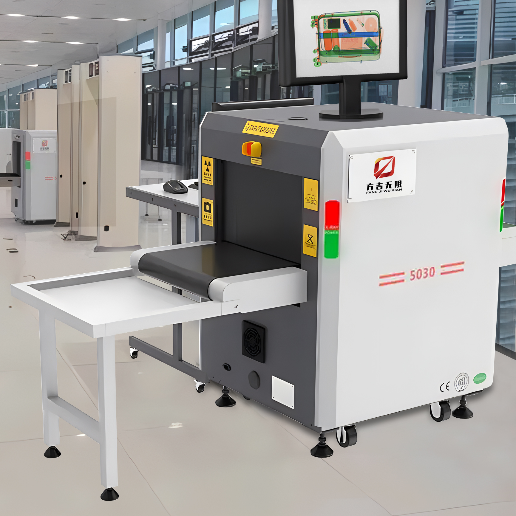 Fangji® FX5030C X-ray Security Scanner is a dual-energy X-ray inspection device developed and manufactured by Fangji Infinite Technology Co., Ltd. Ideal for the security screening of handbags, briefcases, parcels, express items and small packages, it is widely used in logistics, courts, procuratorates, public security bureaus, government agencies and other key locations. Designed to meet industry requirements and integrated with advanced industrial design concepts, the scanner features a sleek and elegant appearance, along with easy installation and mobility.